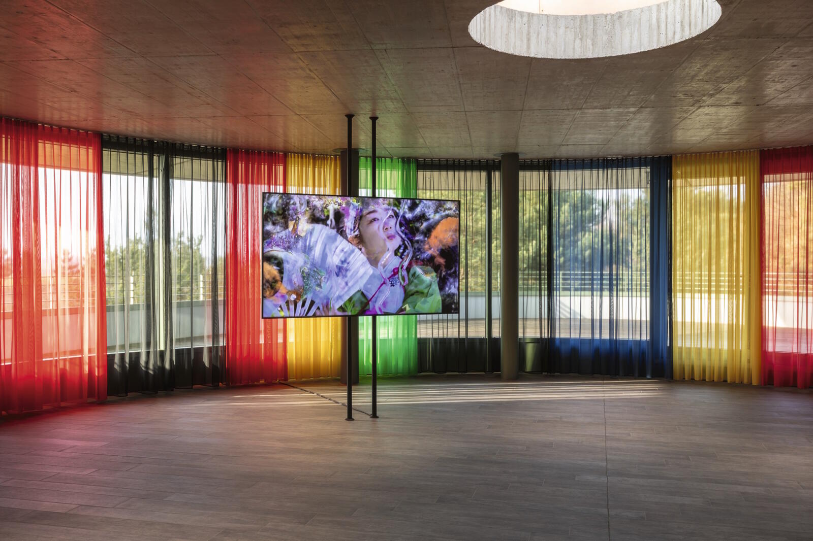 Ihre erste Ausstellung in Deutschland seit zwanzig Jahren nimmt den Standort der Skulpturenhalle auf einem ehemaligen NATO- und US-Raketenstützpunkt – heute von offenen Feldern umgeben – als Ausgangspunkt. Zentrale Videoinstallationen seit der Jahrtausendwende und Architektur-Fotografien treffen auf den neuesten, seit 2018 in Korea und Japan entstandenen Werkkomplex, der sich auch natürlichen Strukturen hinwendet. Im Fokus stehen die Verflechtungen von Raum, Körper, Wahrnehmung und Macht; die Werke werfen so Reflexe auf Fragen der technologisch und geopolitisch geprägten Gegenwart.