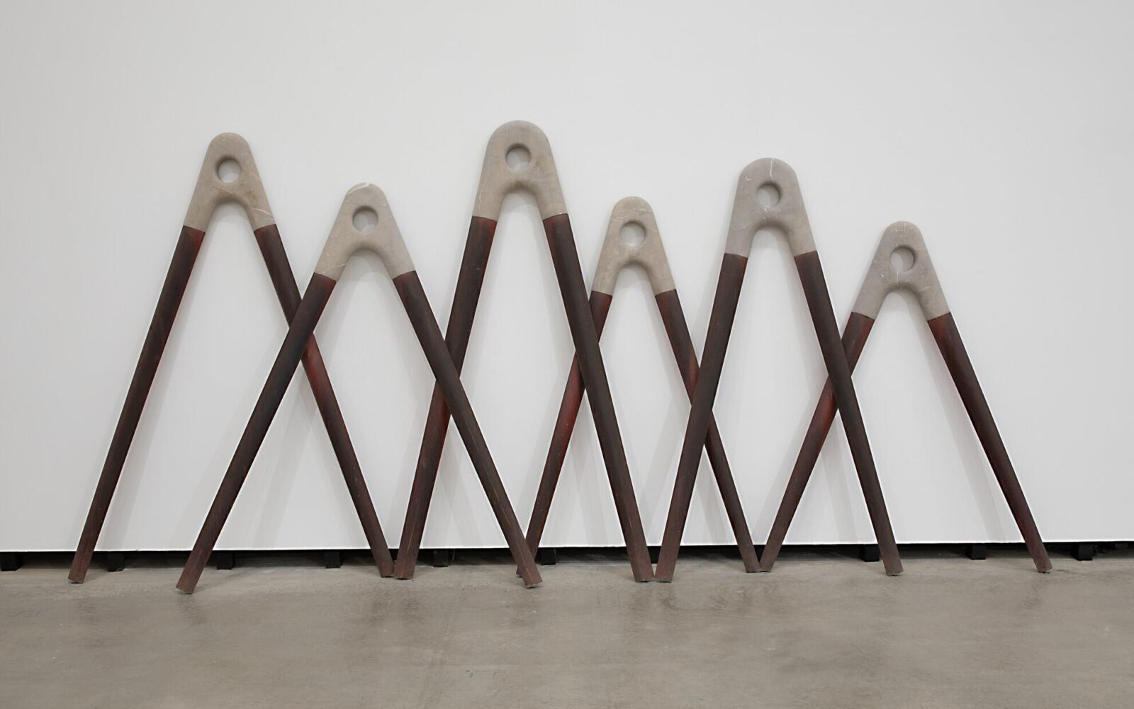 2. Katinka Bock, One to eight (Detail), 2021, Bronze, Stahl, Eiche, Kupfer, Ausstellungsansicht und Courtesy: Gallery 303, New York, © die Künstlerin, Foto: Justin Craun