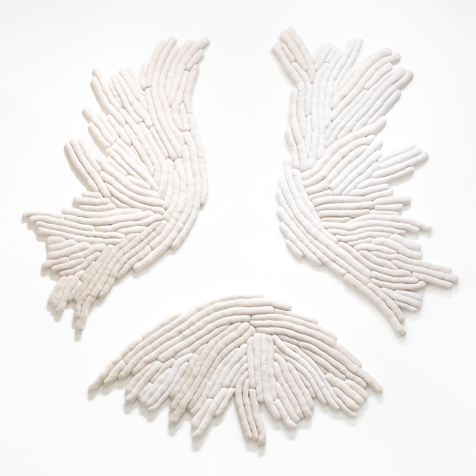 5. Sienna Martz "Ghostly Bloom" 2024 Upcycled fabric, organic kapok fiber, thread, non-solvent adhesive, mounted on birch panel treated with linseed oil and eco-friendly paint 145 x 150 x 2.5 cm